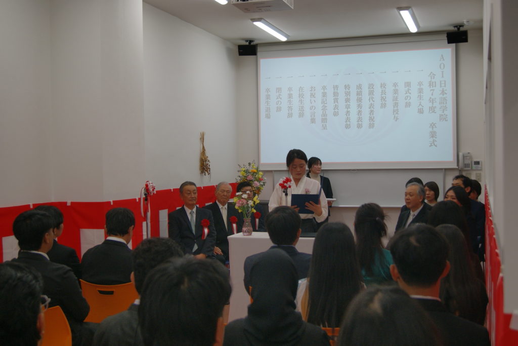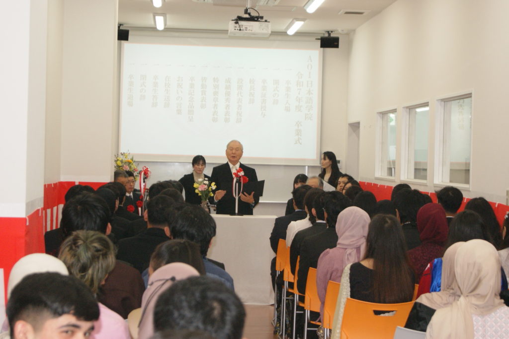 3月6日、AOI日本語学院では2025年度の卒業証書授与式が執り行われました。